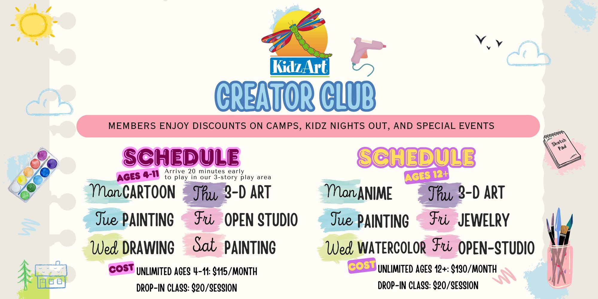 We introduce a personal "tool box" of creative skills. Students learn to apply these tools to access the power of their imagination through our interactive format. While they are learning to create art, they are also increasing their confidence, flexing their problem solving skills and enhancing their creativity.